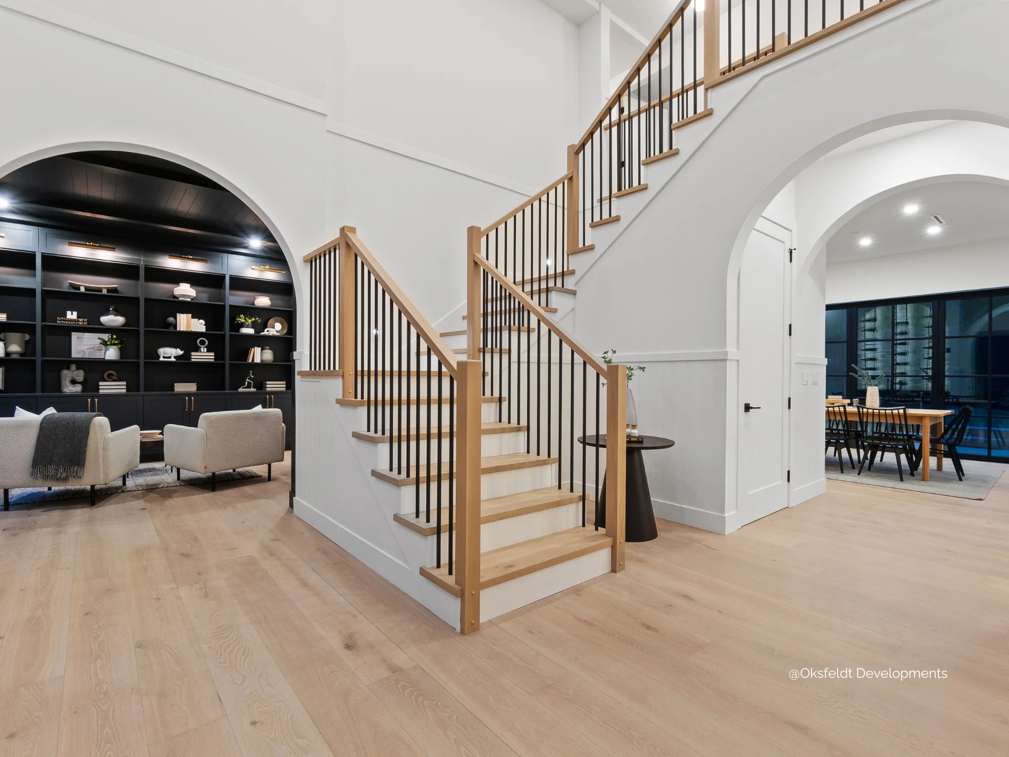 Aura Room Scene is part of the EUROSTYLE Canvas Engineered Hardwood Collection by Flooring For Less, designed to bring refined artistry and natural warmth to modern interiors. Crafted from premium European White Oak, this flooring features a 9/16″ thickness, 9.5″ width, and random lengths up to 87″ (24–87 inches). The high-variation boards are wire-brushed, smoked, and finished in a matte UV oil for a contemporary yet timeless look. With 9-ply tongue & groove construction, it’s radiant heat approved, CARB2 compliant, and backed by a 35-year limited warranty. Installation options include staple, float, or glue, offering flexibility and durability for any space. Each box covers 31.26 sq. ft.
