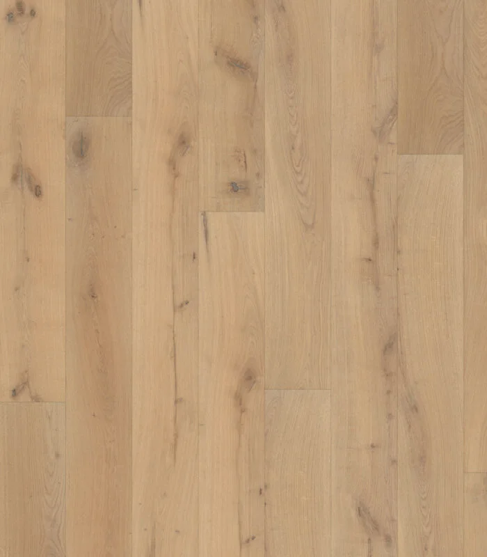 Calaveras captures the refined charm of premium White Oak with a natural, earthy tone that blends well in both traditional and modern interiors. Crafted using ABCD-grade wood, it highlights the authentic texture and variation of real oak. The long 84″ planks and wide 9-1/2” format deliver a seamless, expansive look, perfect for luxurious open spaces.