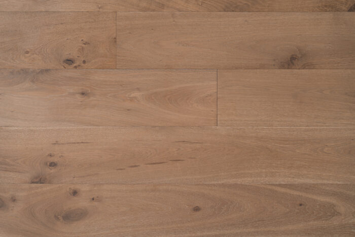 Sunset Ranch from the Okanagan Collection by Flooring For Less embodies the beauty of European Oak. Each 7-1/2” medium-width plank features a 9/16” thickness and a 3mm dry sawn wear layer, providing both strength and elegance. The character-filled knots and wire-brushed texture showcase a timeless aesthetic with a matte aluminum oxide finish. Built with a stable hardwood plywood core, each board is tongue & grooved on four sides for easy installation and smooth transitions. Sunset Ranch offers 23.31 sq.ft. per box, designed for modern interiors with lasting durability.